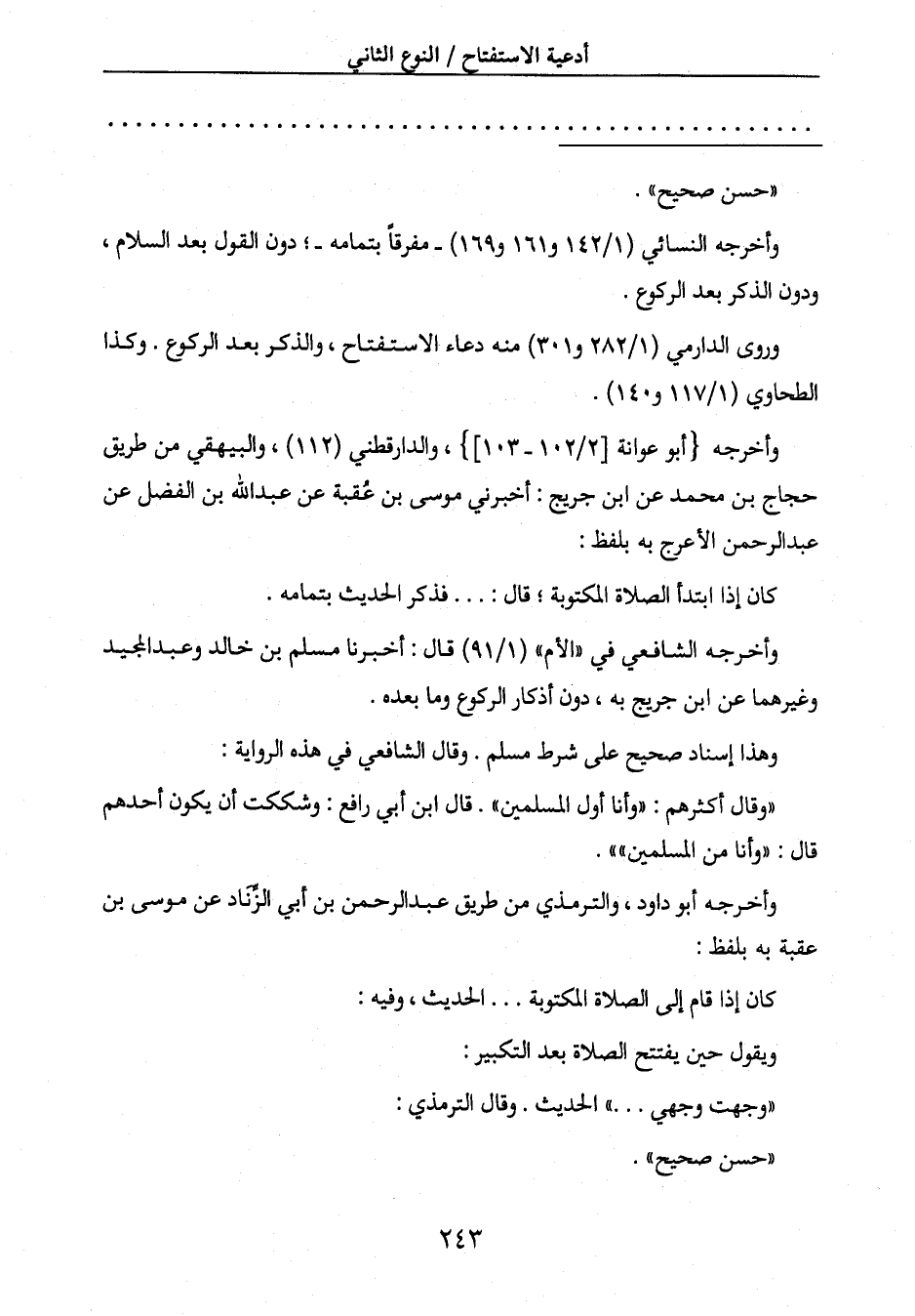 " وجهت وجهي ... " الحديث. وقال الترمذي:
