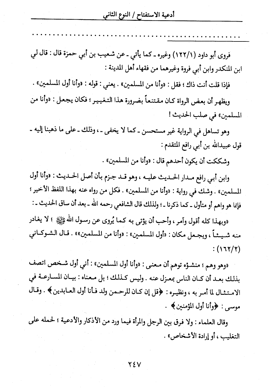 منه شيئاً، ويجعل مكان: " أول المسلمين ": " وأنا من المسلمين ". قال الشوكاني