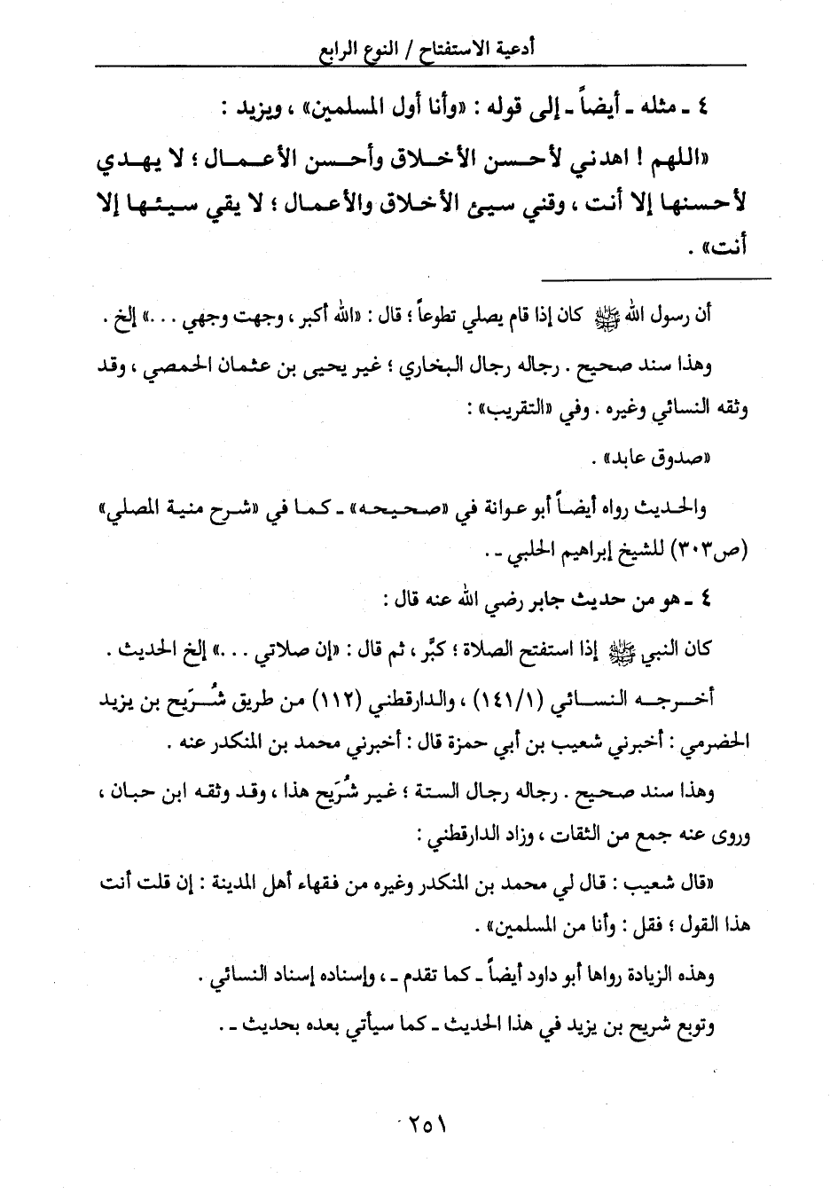 أن رسول الله صَلَّى اللَّهُ عَلَيْهِ وَسَلَّمَِ كان إذا قام يصلي تطوعاً؛ قال: " الله أكبر، وجهت وجهي ... " إلخ.