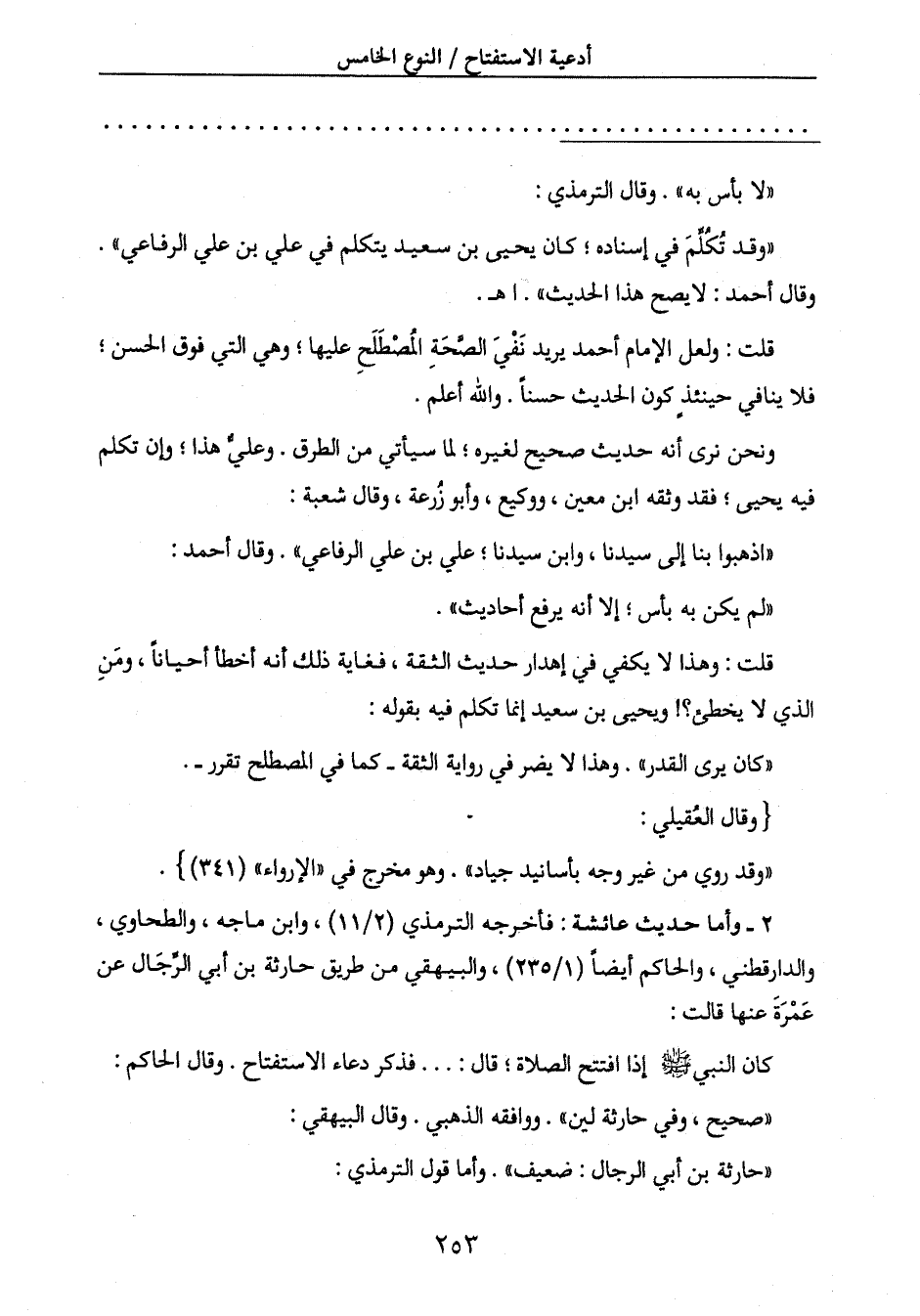 " وقد تُكلِّمَ في إسناده؛ كان يحيى بن سعيد يتكلم في علي بن علي الرفاعي ".