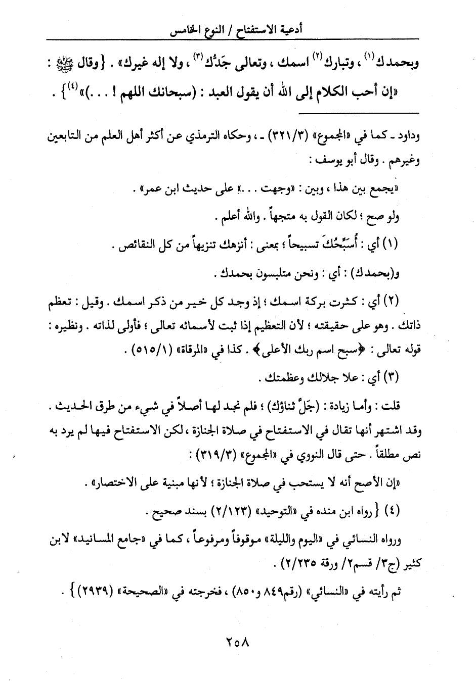 وبحمدك (1) ، وتبارك (2) اسمك، وتعالى جَدُّك (3) ، ولا إله غيرك ". {وقال صَلَّى اللَّهُ عَلَيْهِ وَسَلَّمَ: