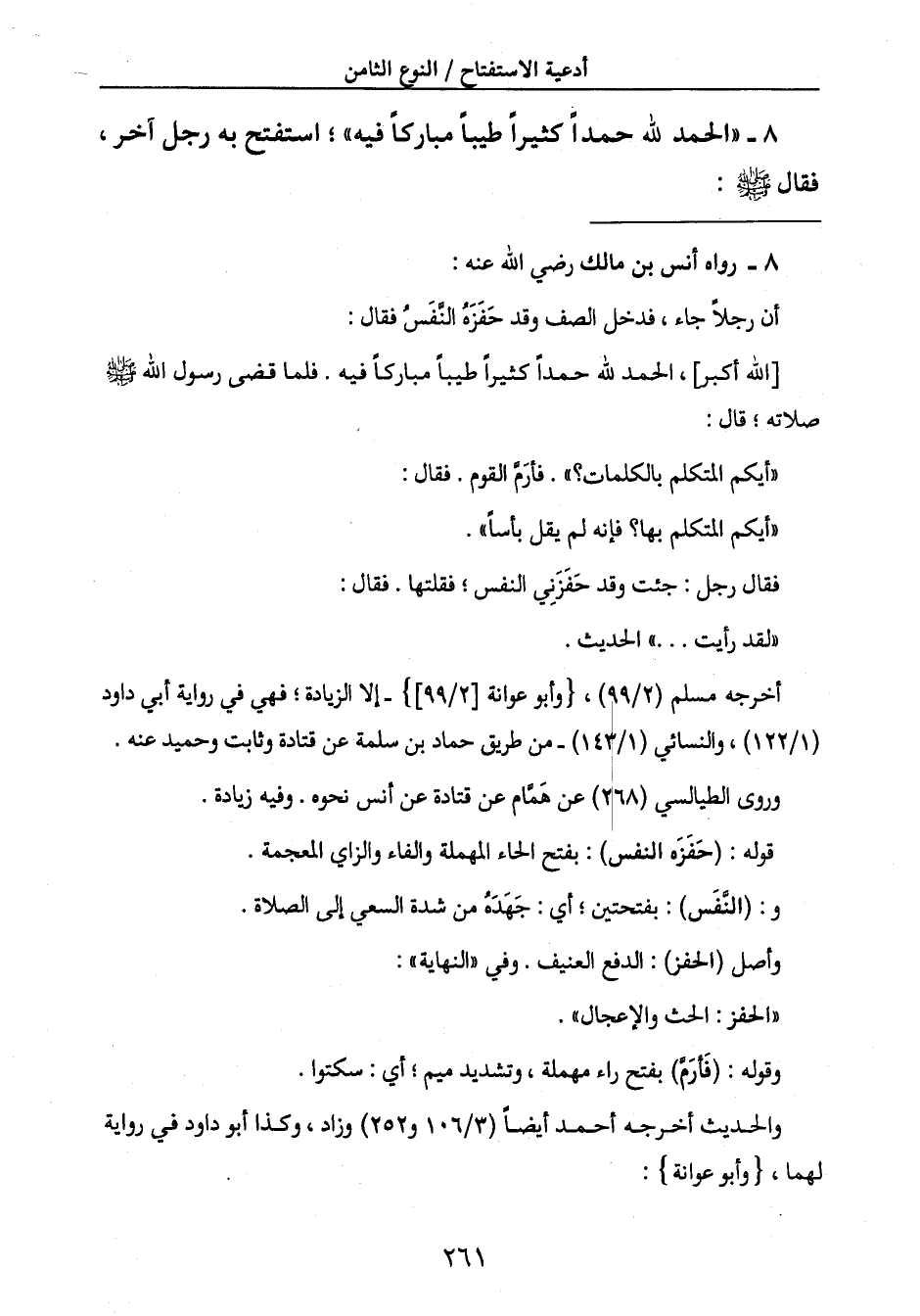 8- " الحمد لله حمداً كثيراً طيباً مباركاً فيه "؛ استفتح به رجل آخر،