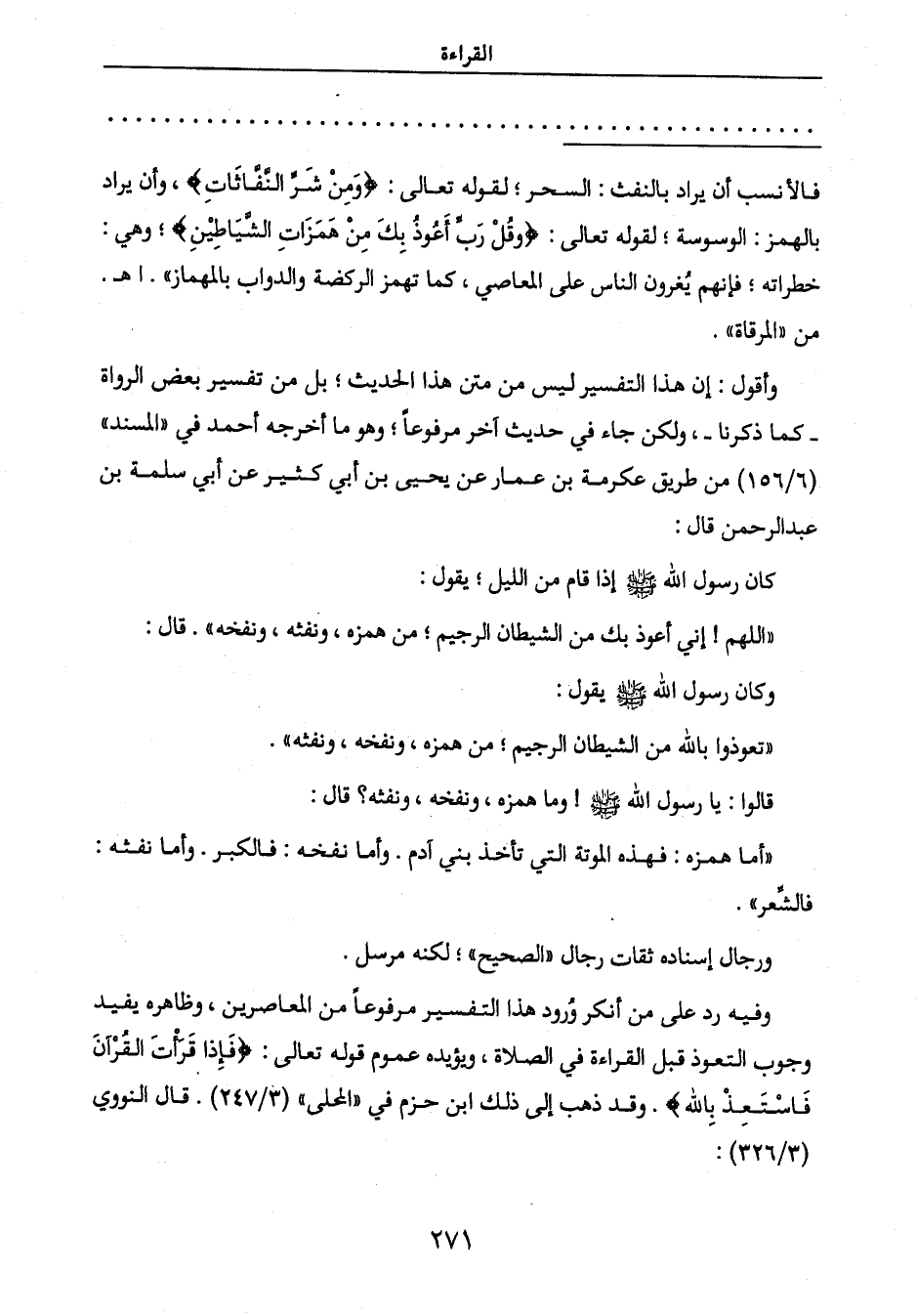 قالوا: يا رسول الله صَلَّى اللَّهُ عَلَيْهِ وَسَلَّمَ! وما همزه، ونفخه، ونفثه؟ قال: