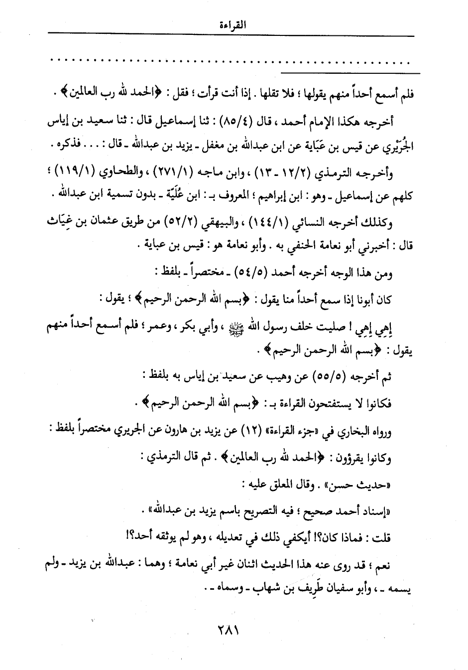 وكانوا يقرؤون: {الحَمْدُ لِلَّهِ رَبِّ العَالَمِينَ} . ثم قال الترمذي: