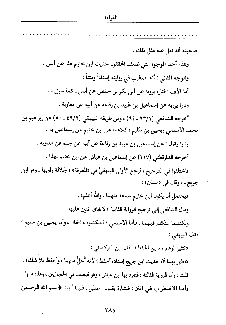 وهذا أحد الوجوه التي ضعف المحققون حديث ابن خثيم هذا عن أنس.