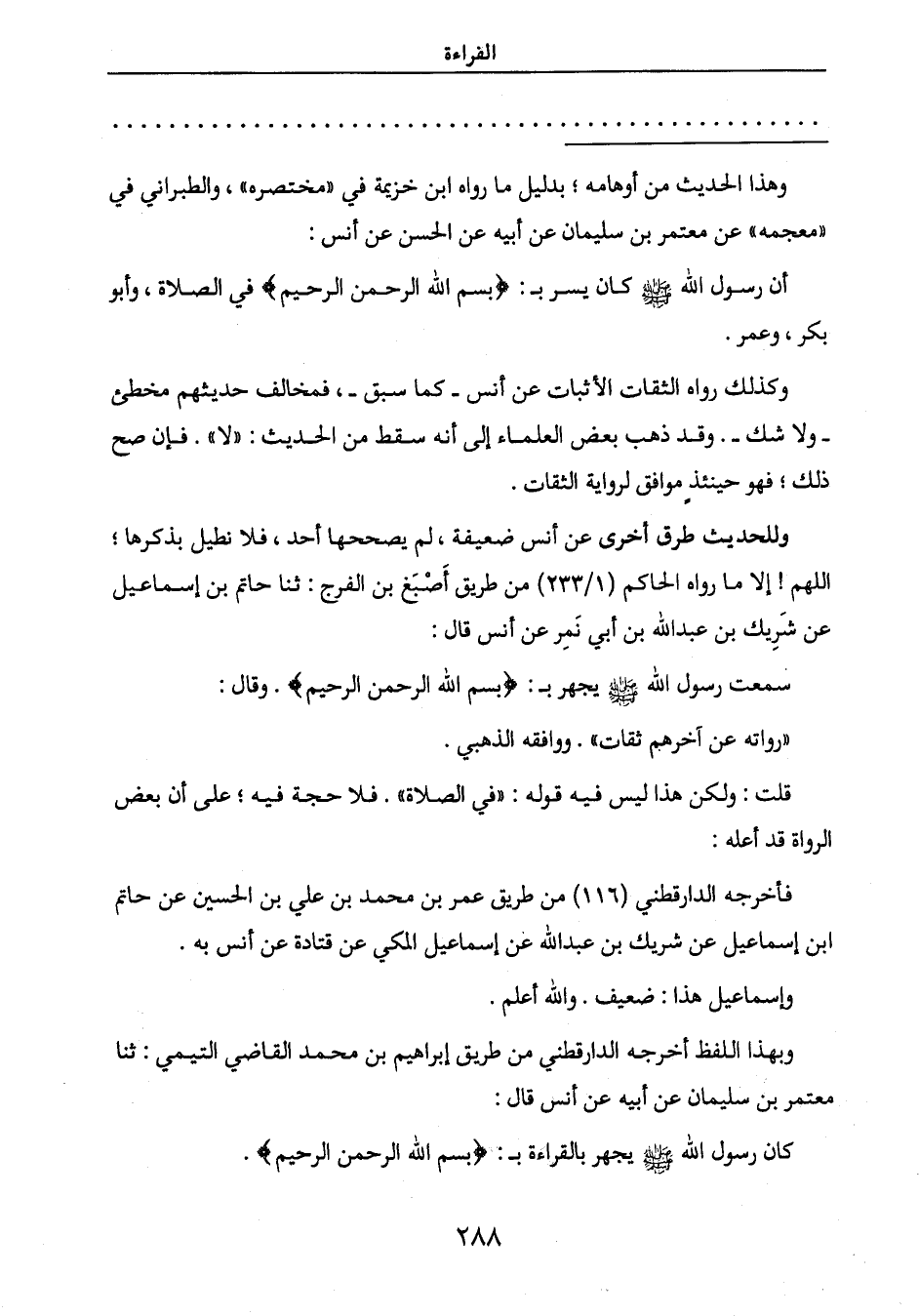 أن رسول الله صَلَّى اللَّهُ عَلَيْهِ وَسَلَّمَ كان يسر بـ: {بِسْمِ اللَّهِ الرَّحْمَنِ الرَّحِيمِ} في الصلاة، وأبو