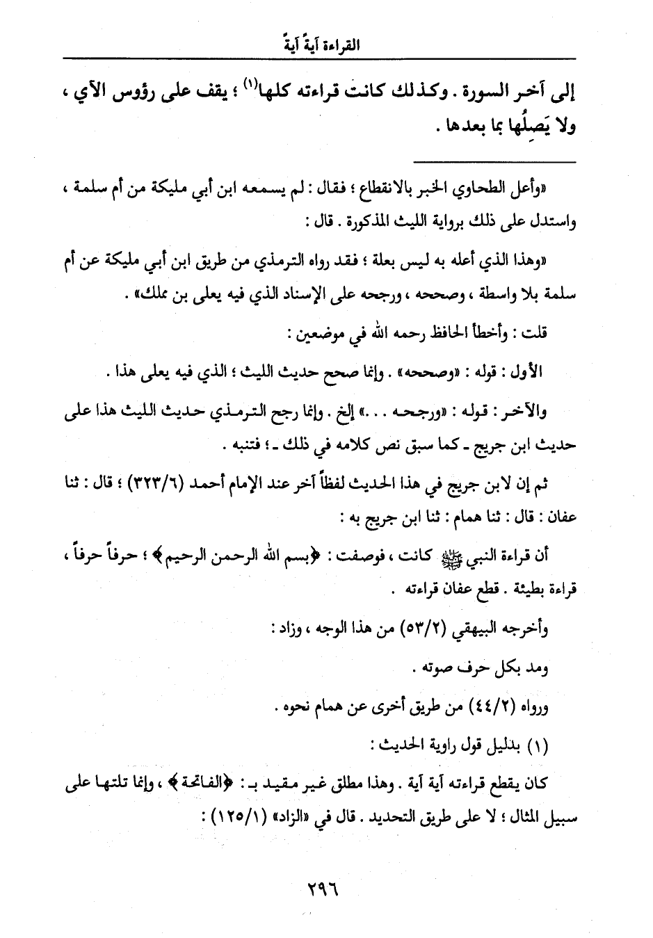 أن قراءة النبي صَلَّى اللَّهُ عَلَيْهِ وَسَلَّمَ كانت، فوصفت: {بِسْمِ اللَّهِ الرَّحْمَنِ الرَّحِيمِ} ؛ حرفاً حرفاً،