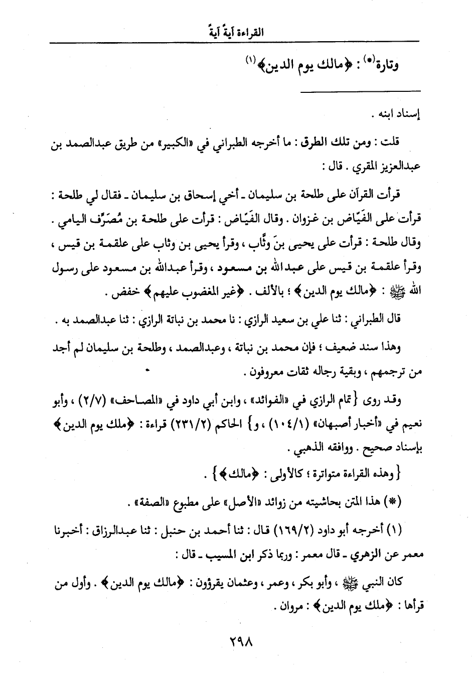 نعيم في " أخبار أصبهان " (1/104) ، و} الحاكم (2/231) قراءة: {مَلِكِ يَوْمِ الدِّينِ}