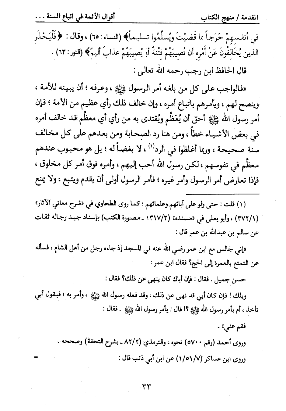 أمر رسول الله صَلَّى اللَّهُ عَلَيْهِ وَسَلَّمَ أحق أن يُعَظَّم ويُقتدى به من رأي أي مُعَظَّم قد خالف أمره