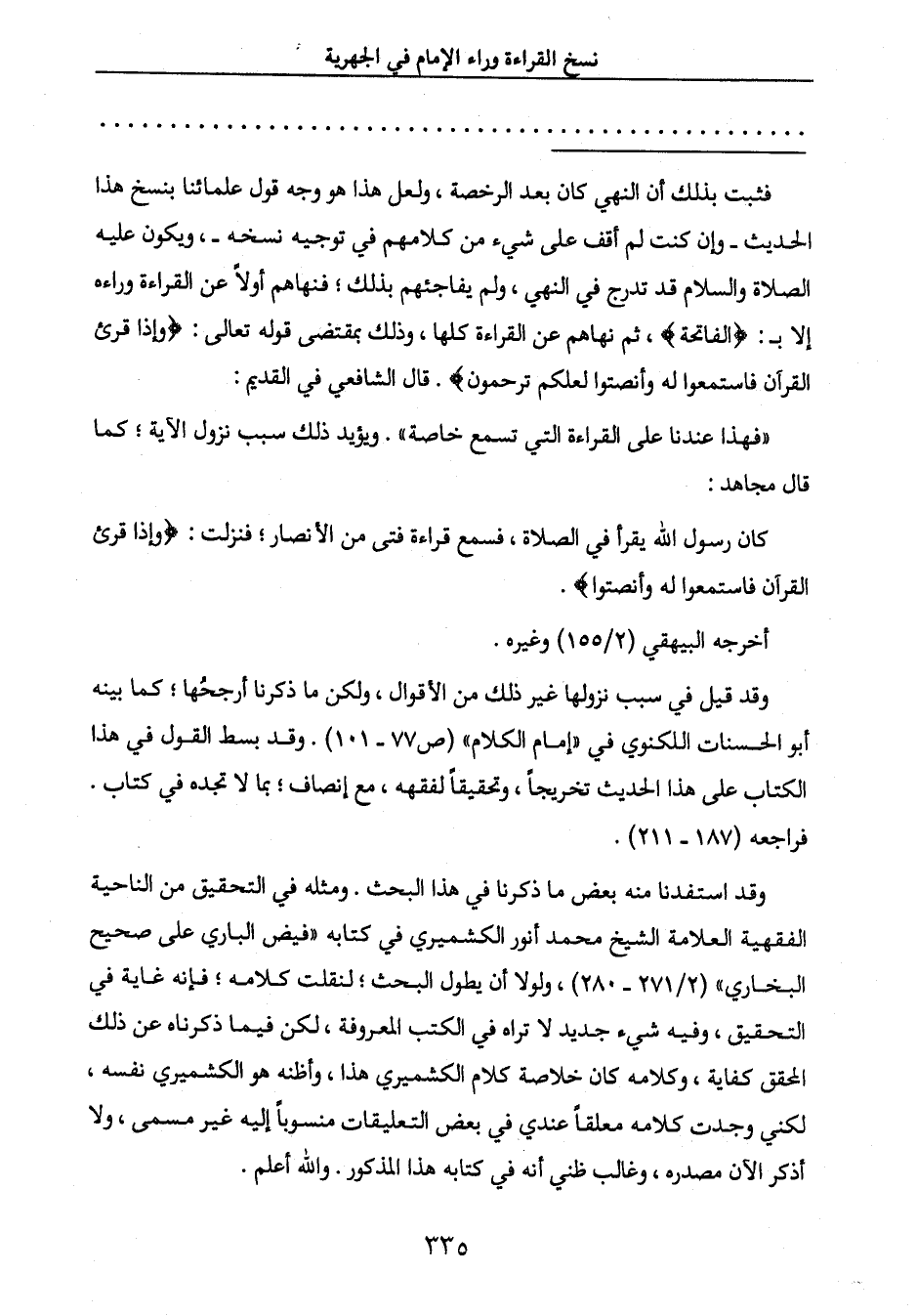 الفقهية العلامة الشيخ محمد أنور الكشميري في كتابه " فيض الباري على صحيح