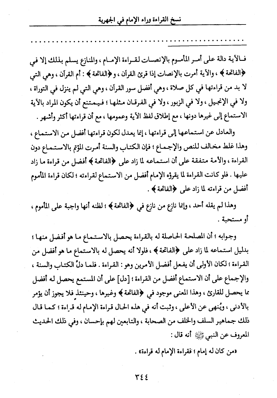 وهذا غلط مخالف للنص والإجماع؛ فإن الكتاب والسنة أمرت المؤتم بالاستماع دون