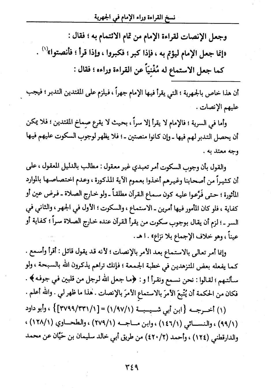 كما جعل الاستماع له مُغْنِيَاً عن القراءة وراءه؛ فقال:
