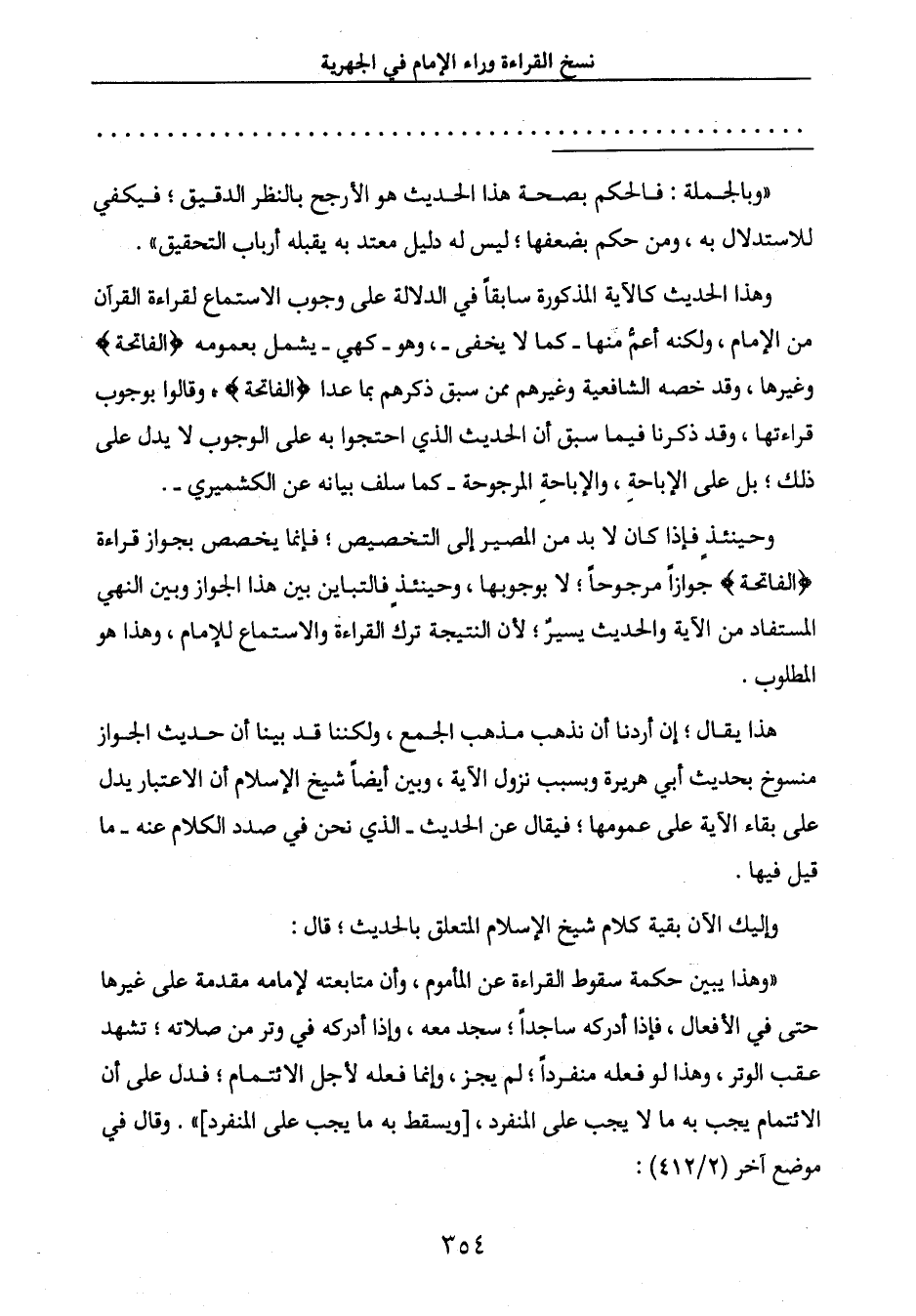 قراءتها، وقد ذكرنا فيما سبق أن الحديث الذي احتجوا به على الوجوب لا يدل على