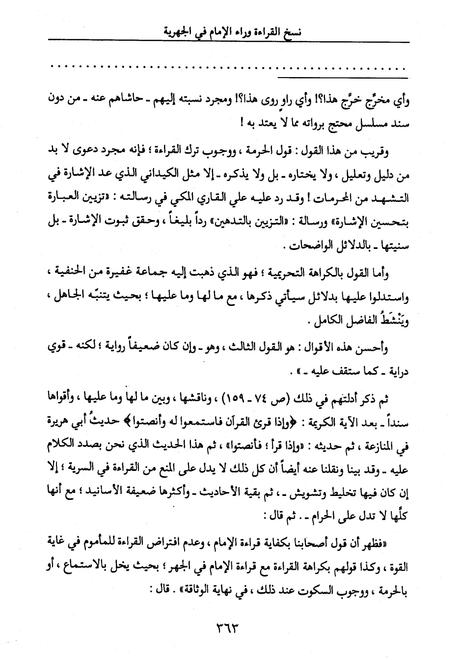 في المنازعة، ثم حديثه: " وإذا قرأ؛ فأنصتوا "، ثم هذا الحديث الذي نحن بصدد الكلام