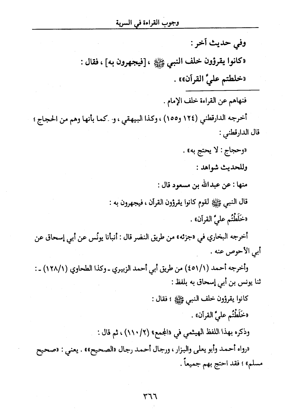 كانوا يقرؤون خلف النبي صَلَّى اللَّهُ عَلَيْهِ وَسَلَّمَ؛ فقال: