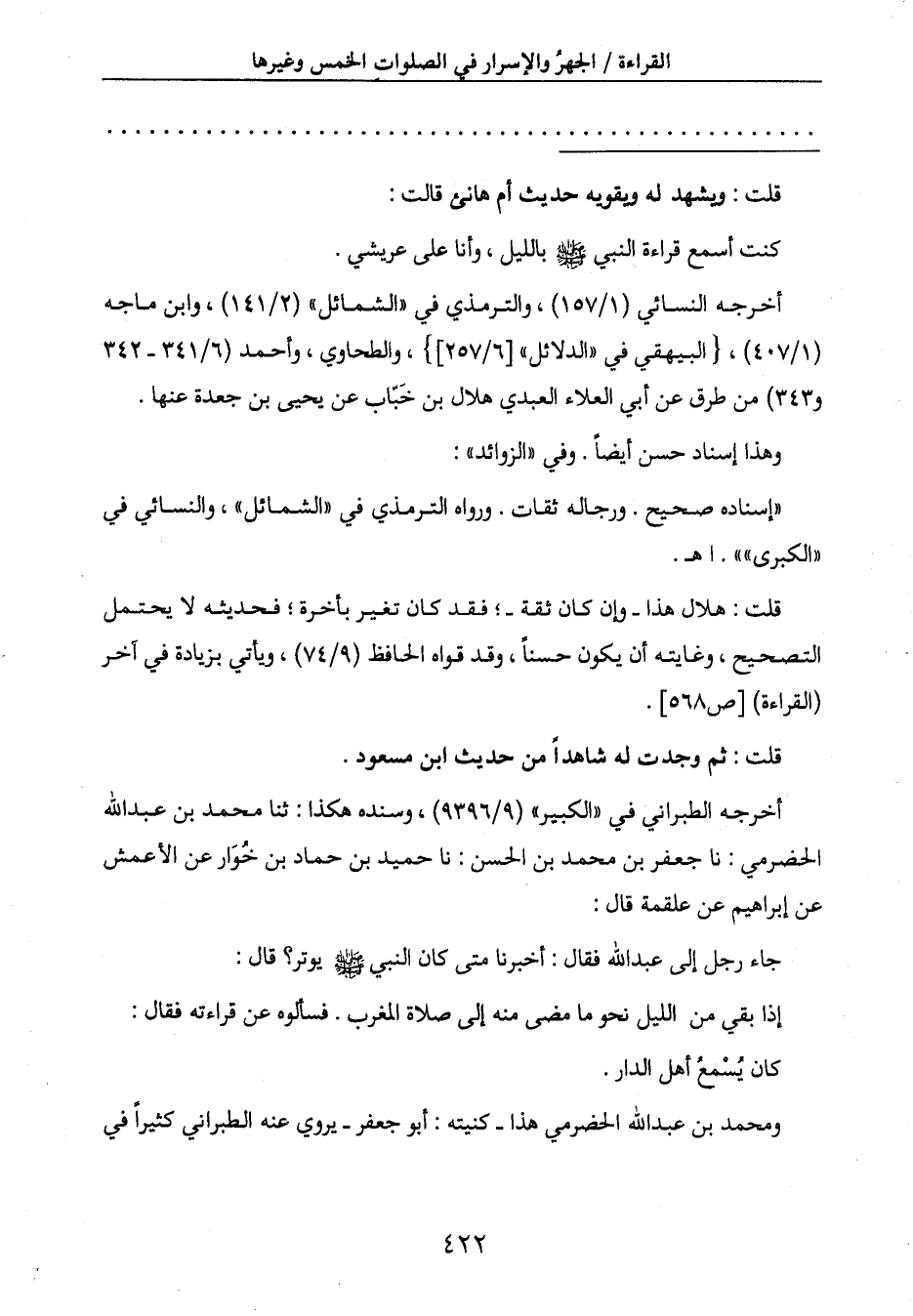 (1/407) ، {البيهقي في " الدلائل " [6/257] } ، والطحاوي، وأحمد (6/341 - 342