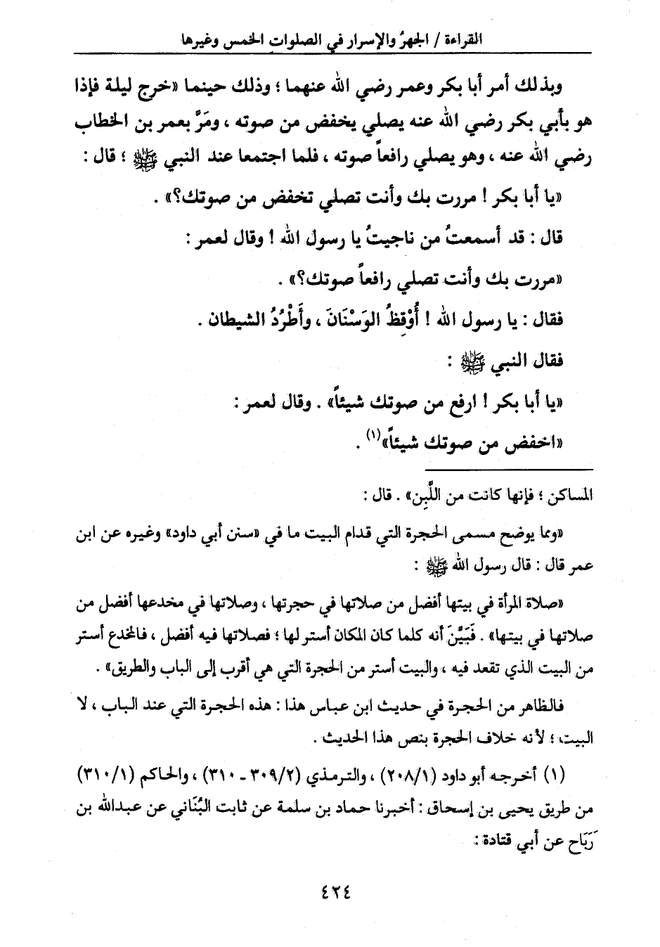 " يا أبا بكر! مررت بك وأنت تصلي تخفض من صوتك؟ ".