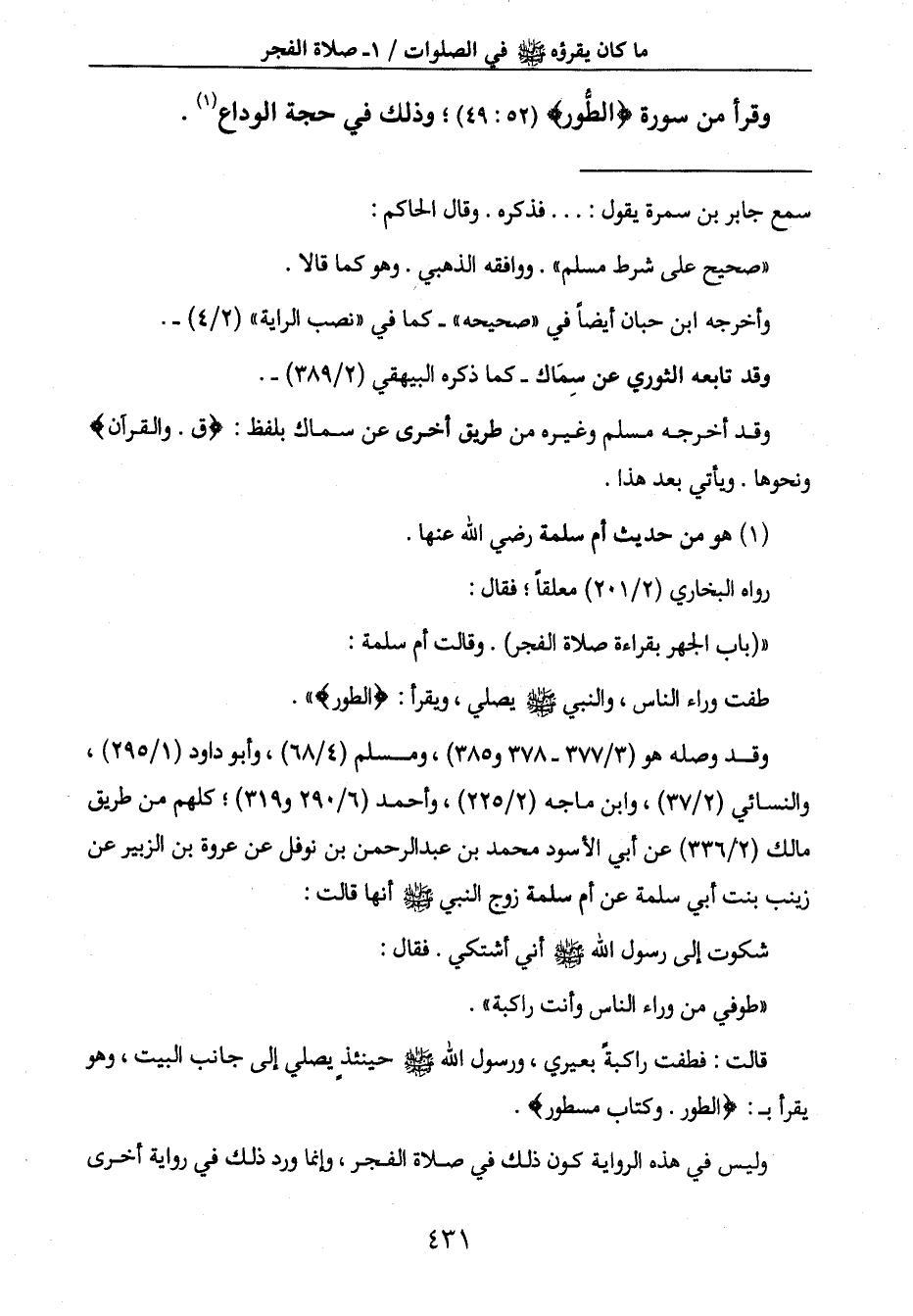 " (باب الجهر بقراءة صلاة الفجر) . وقالت أم سلمة: