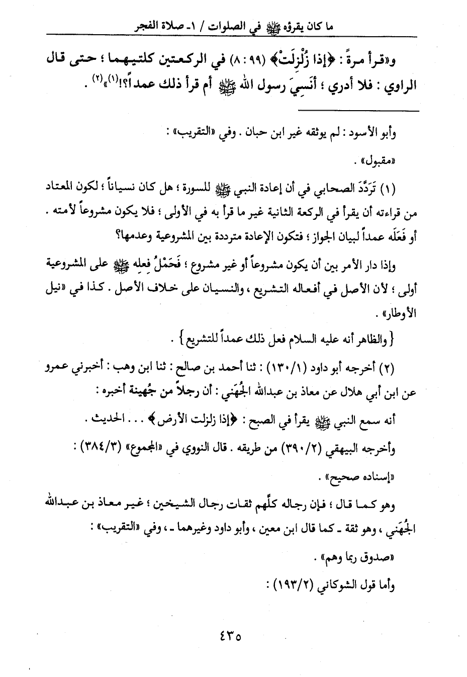 و " قرأ مرةً: {إِذَا زُلْزِلَتْ} (99: 8) في الركعتين كلتيهما؛ حتى قال