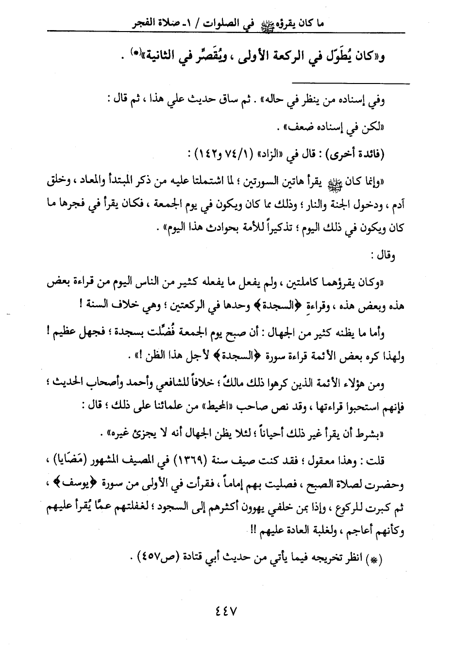هذه وبعض هذه، وقراءةِ {السَّجْدَة} وحدها في الركعتين؛ وهي خلاف السنة!