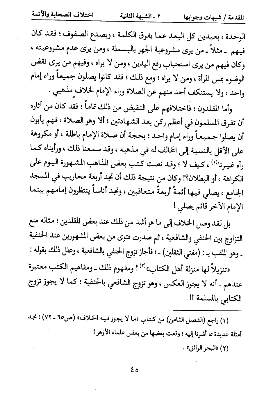 (1) راجع (الفصل الثامن) من كتاب " ما لا يجوز فيه الخلاف " (ص 65 - 72) ؛ تجد
