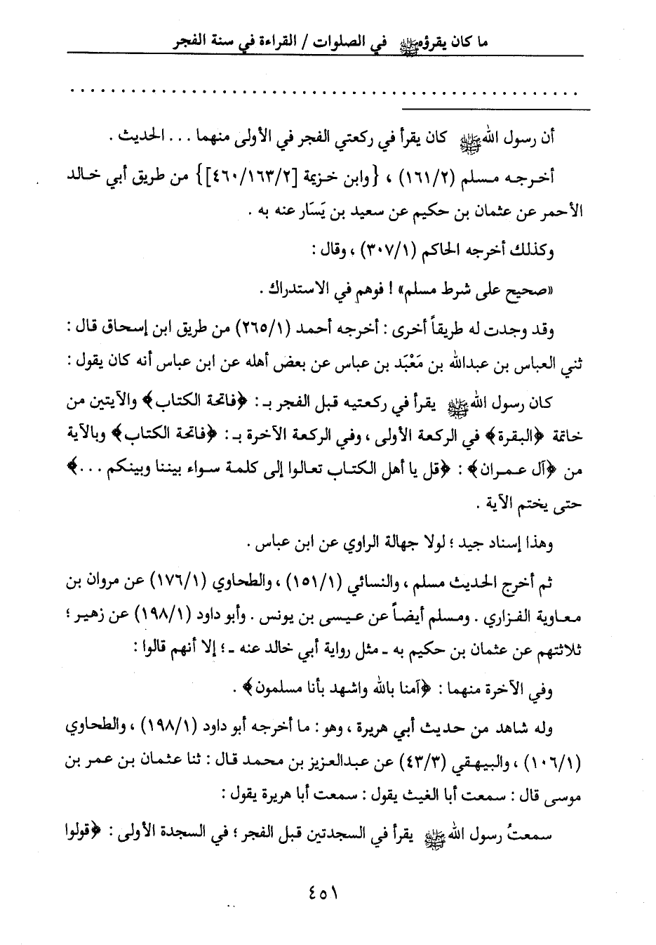 أن رسول الله صَلَّى اللَّهُ عَلَيْهِ وَسَلَّمَ كان يقرأ في ركعتي الفجر في الأولى منهما ... الحديث.