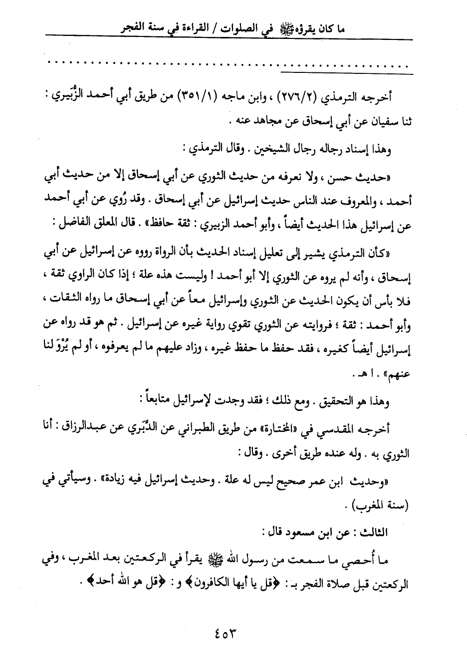 عن إسرائيل هذا الحديث أيضاً، وأبو أحمد الزبيري: ثقة حافظ ". قال المعلق الفاضل: