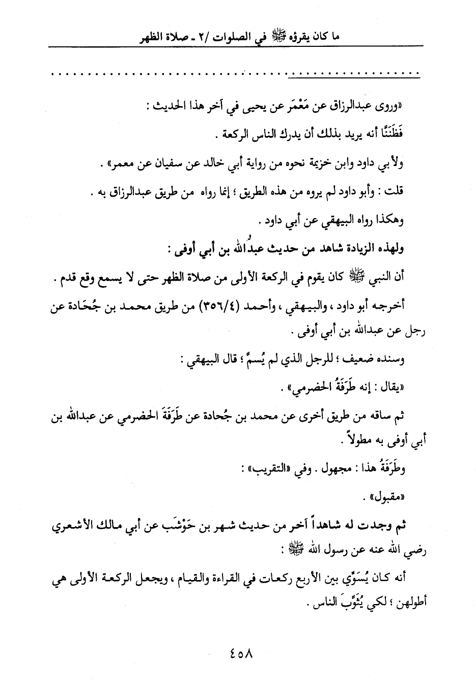 أن النبي صَلَّى اللَّهُ عَلَيْهِ وَسَلَّمَ كان يقوم في الركعة الأولى من صلاة الظهر حتى لا يسمع وقع قدم.