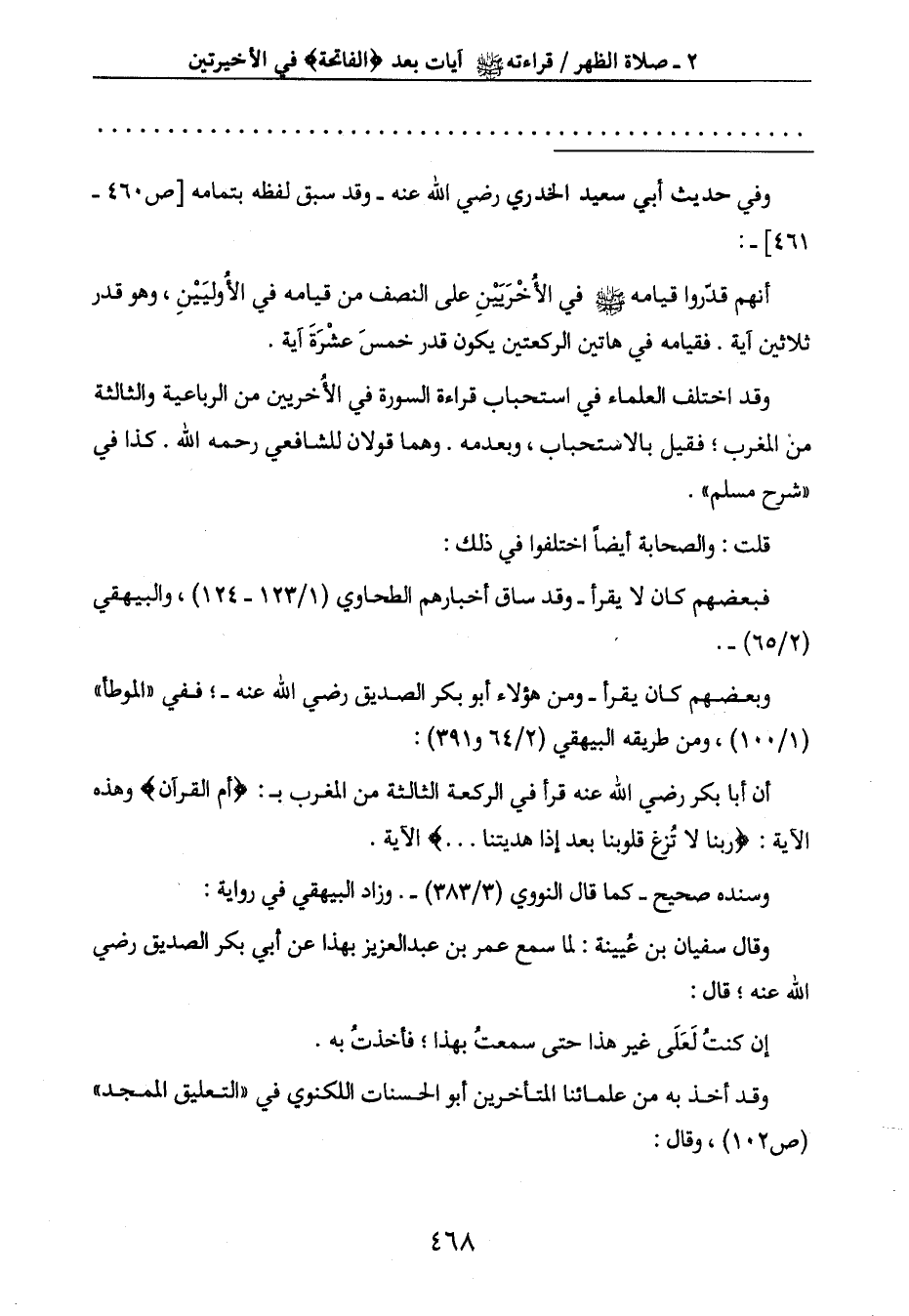 أن أبا بكر رضي الله عنه قرأ في الركعة الثالثة من المغرب بـ: {أم القرآن} وهذه