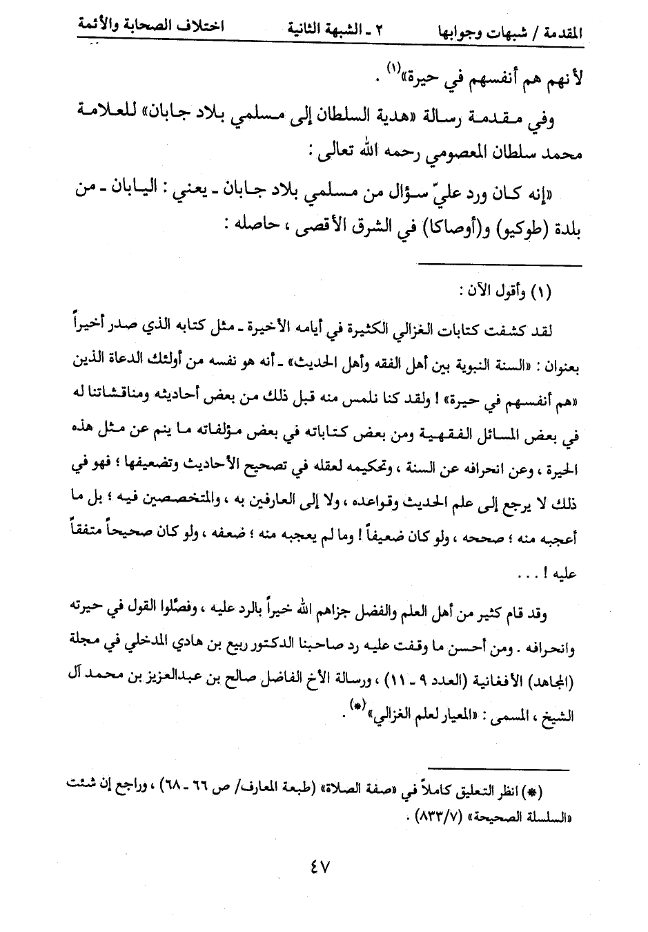 (*) انظر التعليق كاملاً في " صفة الصلاة " (طبعة المعارف /ص 66 - 68) ، وراجع إن شئت