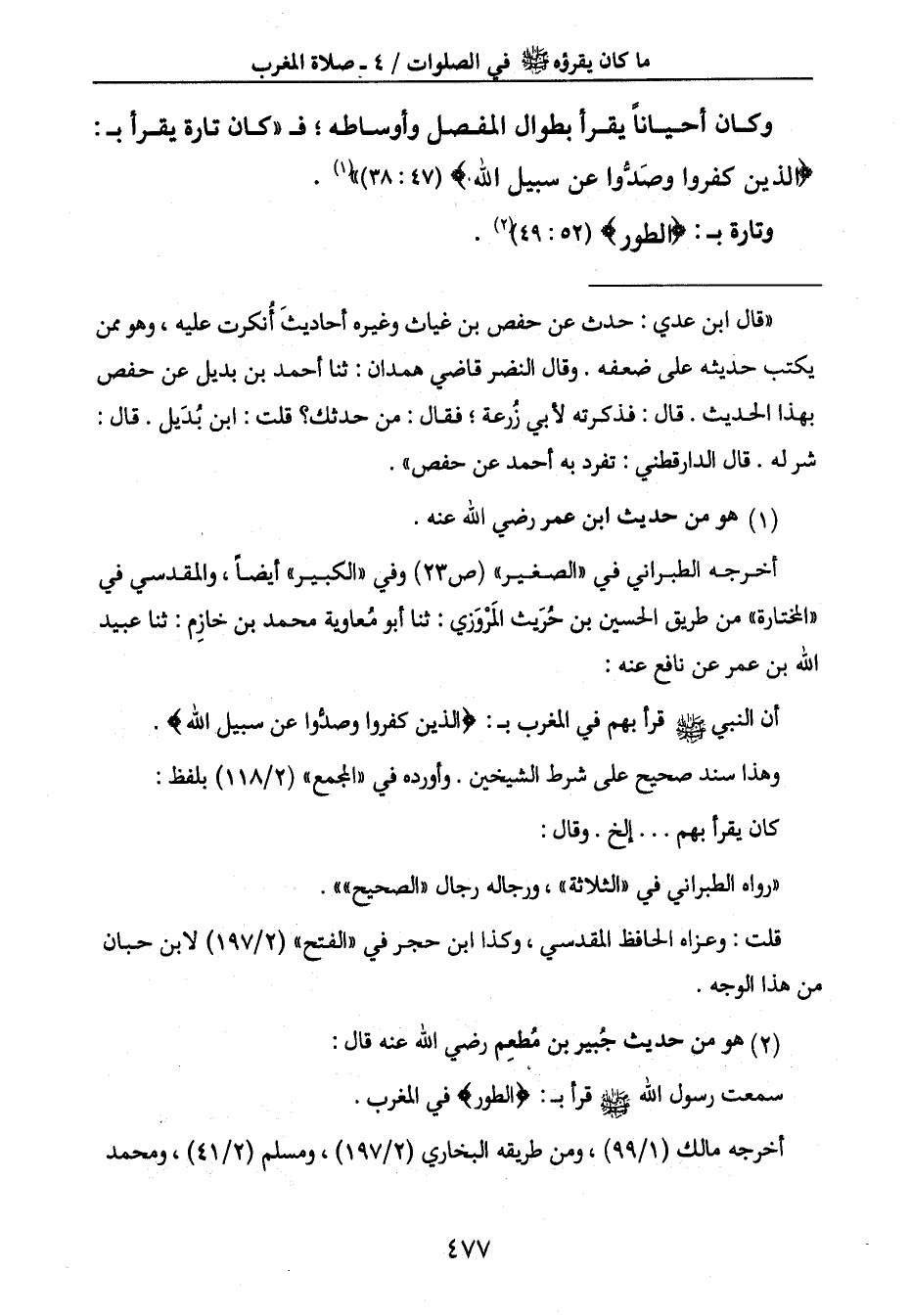 وكان أحياناً يقرأ بطوال المفصل وأوساطه؛ فـ " كان تارة يقرأ بـ: