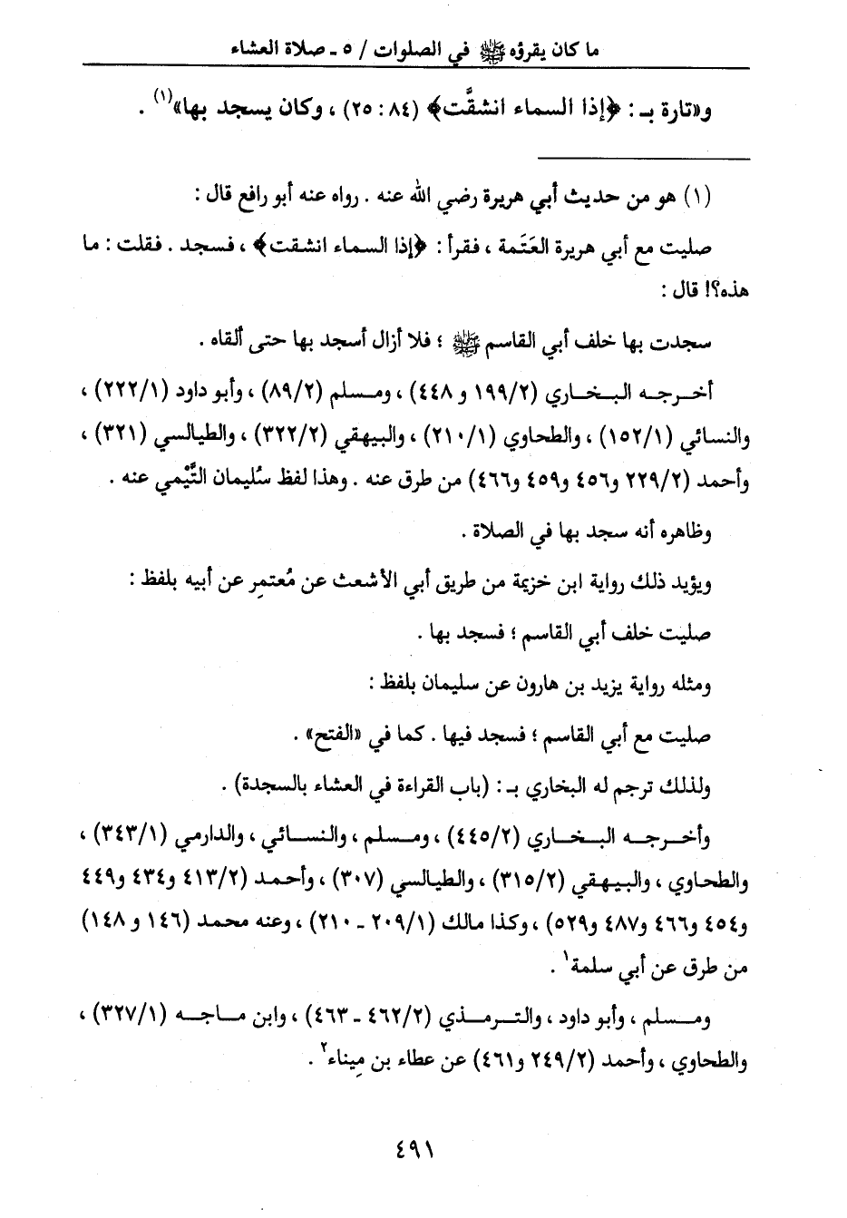 و " تارة بـ: {إِذَا السَّمَاءُ انشَقَّتْ} (84: 25) ، وكان يسجد بها " (1) .