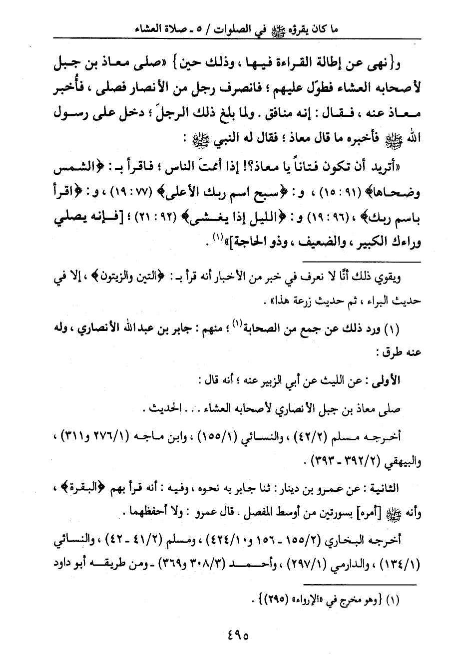 و {نهى عن إطالة القراءة فيها، وذلك حين} " صلى معاذ بن جبل