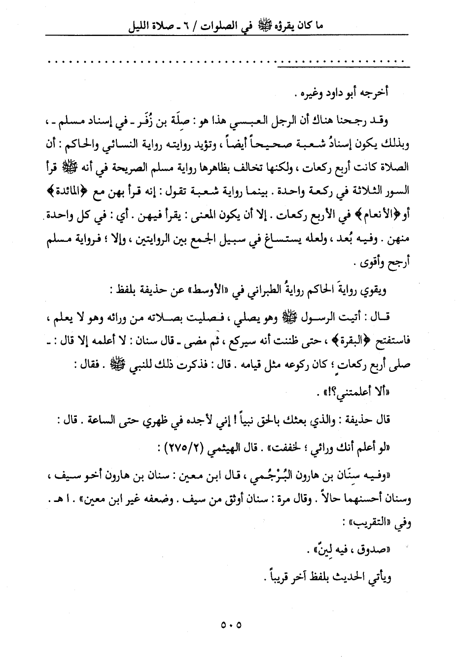 صلى أربع ركعاتٍ؛ كان ركوعه مثل قيامه. قال: فذكرت ذلك للنبي صَلَّى اللَّهُ عَلَيْهِ وَسَلَّمَ. فقال: