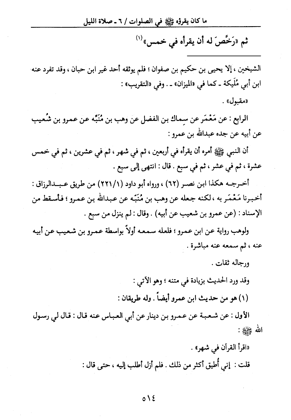 ثم " رَخَّصَ له أن يقرأه في خمس " (1)