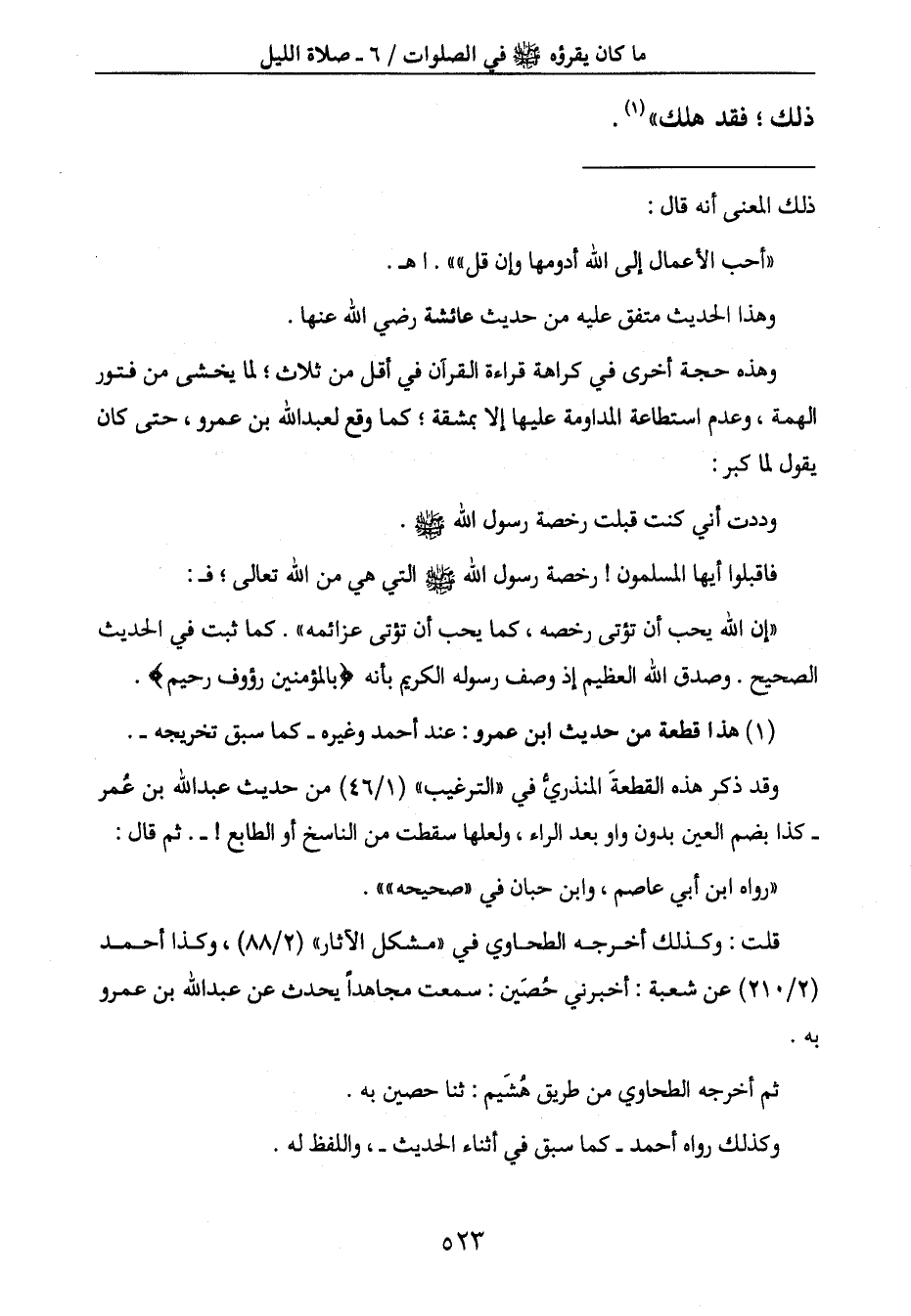 " أحب الأعمال إلى الله أدومها وإن قل ". اهـ.