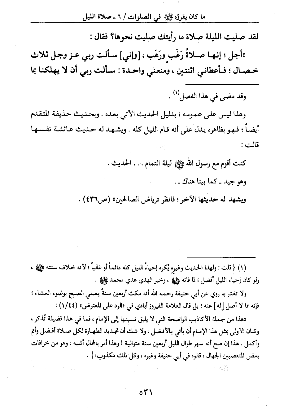 (1) {قلت: ولهذا الحديث وغيرِهِ يُكره إحياءُ الليل كله دائماً أو غالباً؛ لأنه خلاف سنته صَلَّى اللَّهُ عَلَيْهِ وَسَلَّمَ،