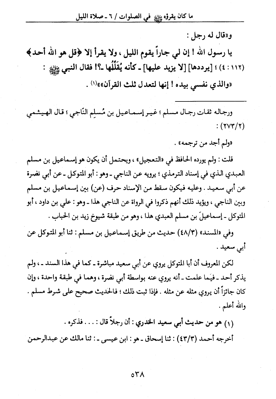 (112: 4) ؛ [يرددها] [لا يزيد عليها]- كأنه يُقَلِّلُها -؟! فقال النبي صَلَّى اللَّهُ عَلَيْهِ وَسَلَّمَ: