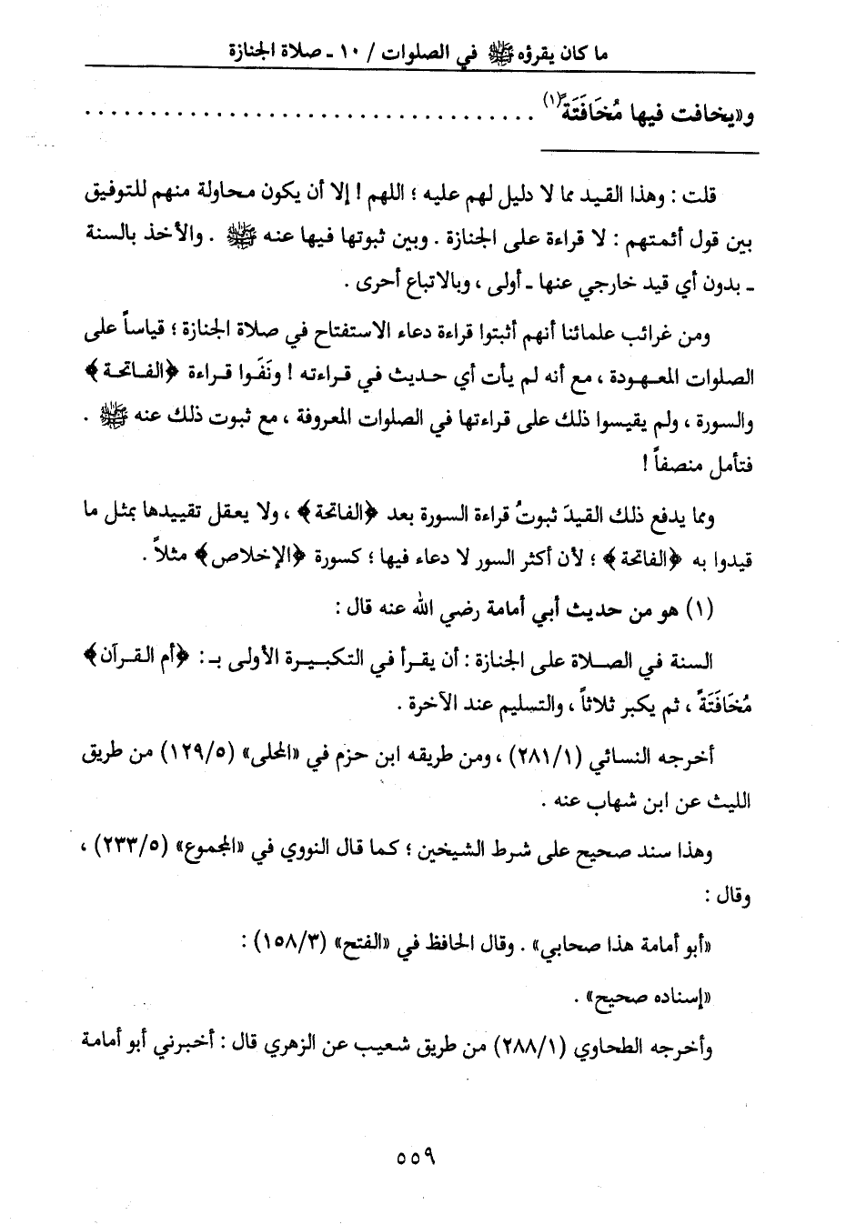 والسورة، ولم يقيسوا ذلك على قراءتها في الصلوات المعروفة، مع ثبوت ذلك عنه صَلَّى اللَّهُ عَلَيْهِ وَسَلَّمَ.