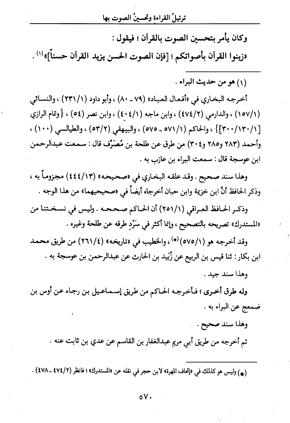" زينوا القرآن بأصواتكم؛ [فإن الصوت الحسن يزيد القرآن حسناً] " (1) .