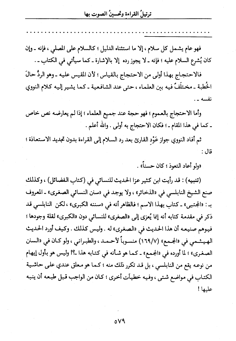 صنع الشيخ النابلسي في " الذخائر "، ولا يوجد في " سنن النسائي الصغرى " - المعروف