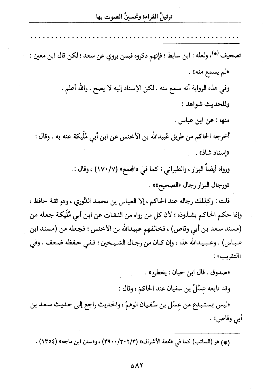 (مسند سعد بن أبي وقاص) ، فخالفهم عبيد الله بن الأخنس؛ فجعله من (مسند ابن