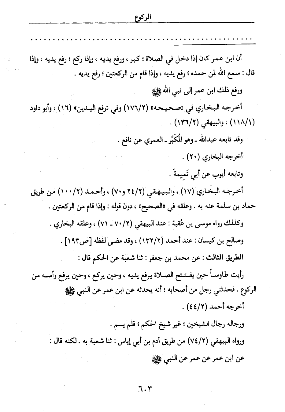 أن ابن عمر كان إذا دخل في الصلاة؛ كبر، ورفع يديه، وإذا ركع؛ رفع يديه، وإذا