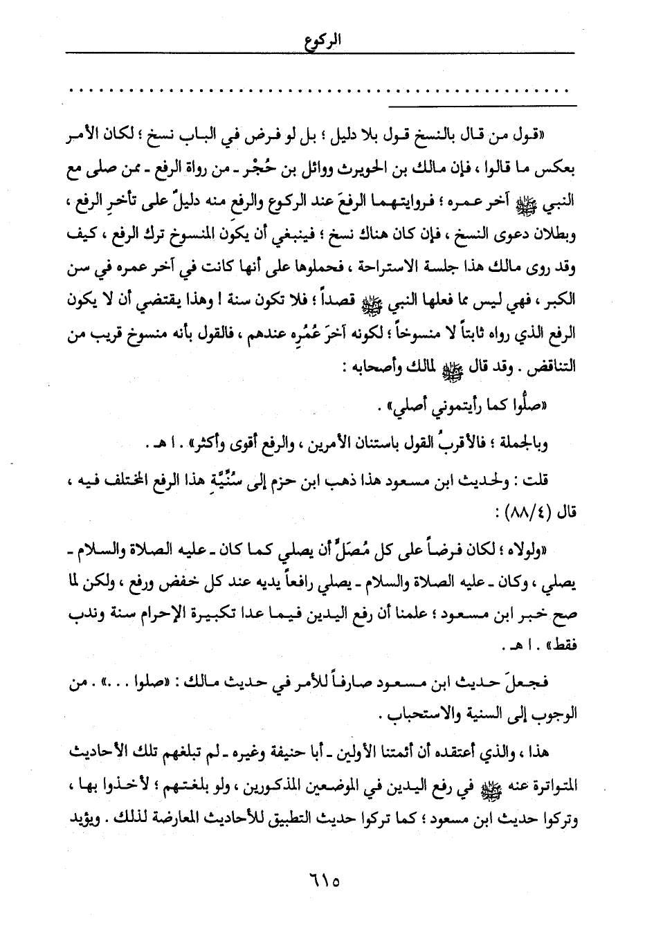 وبطلان دعوى النسخ، فإن كان هناك نسخ؛ فينبغي أن يكون المنسوخ ترك الرفع، كيف