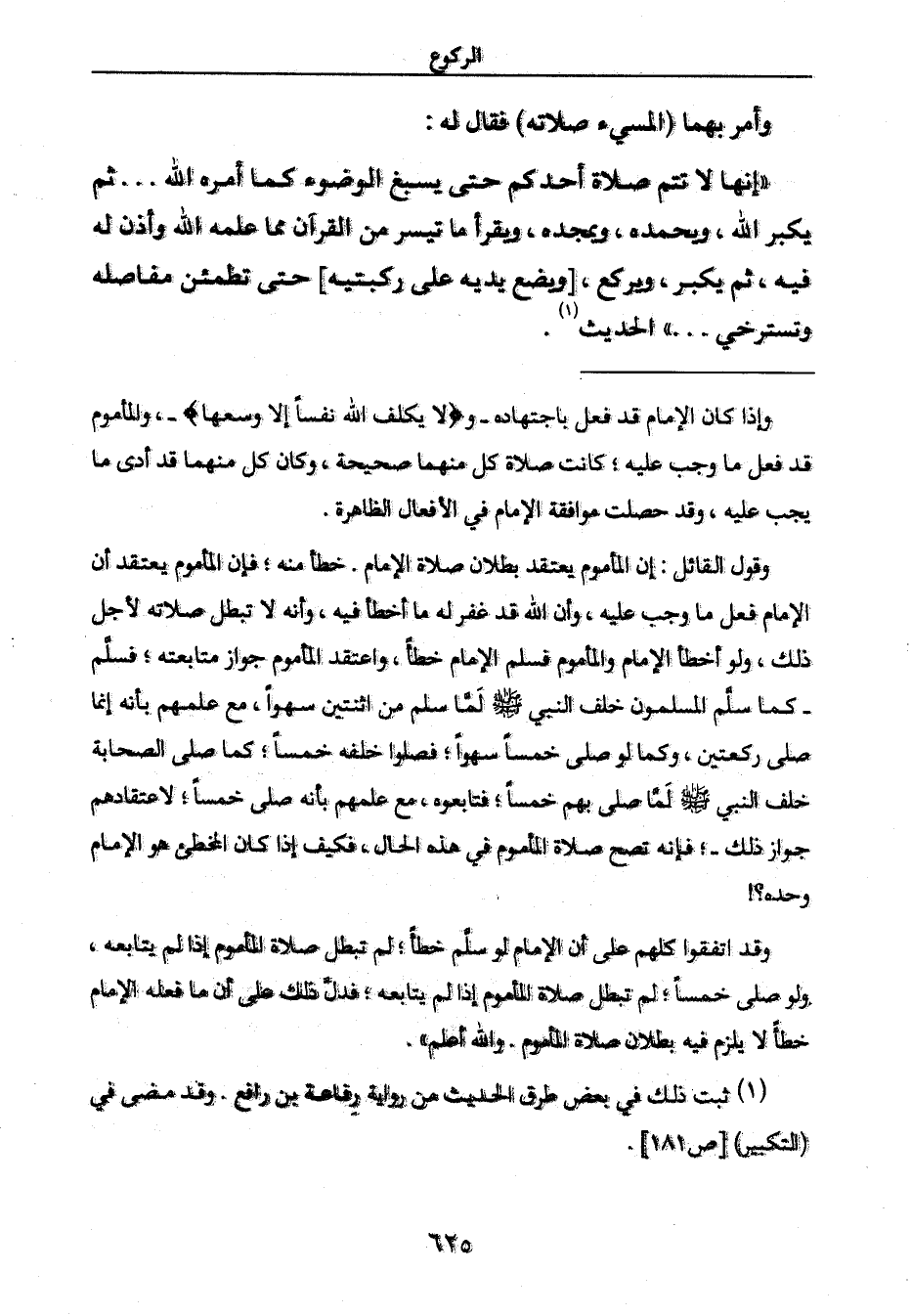 (1) ثبت ذلك في بعض طرق الحديث من رواية رِفاعة بن رافع. وقد مضى في