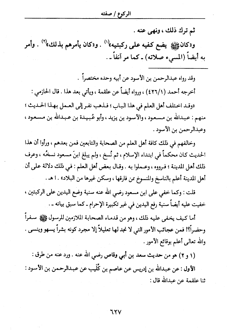 و" كان صَلَّى اللَّهُ عَلَيْهِ وَسَلَّمَ يضع كفيه على ركبتيه " (1) . و " كان يأمرهم بذلك " (2) . وأمر