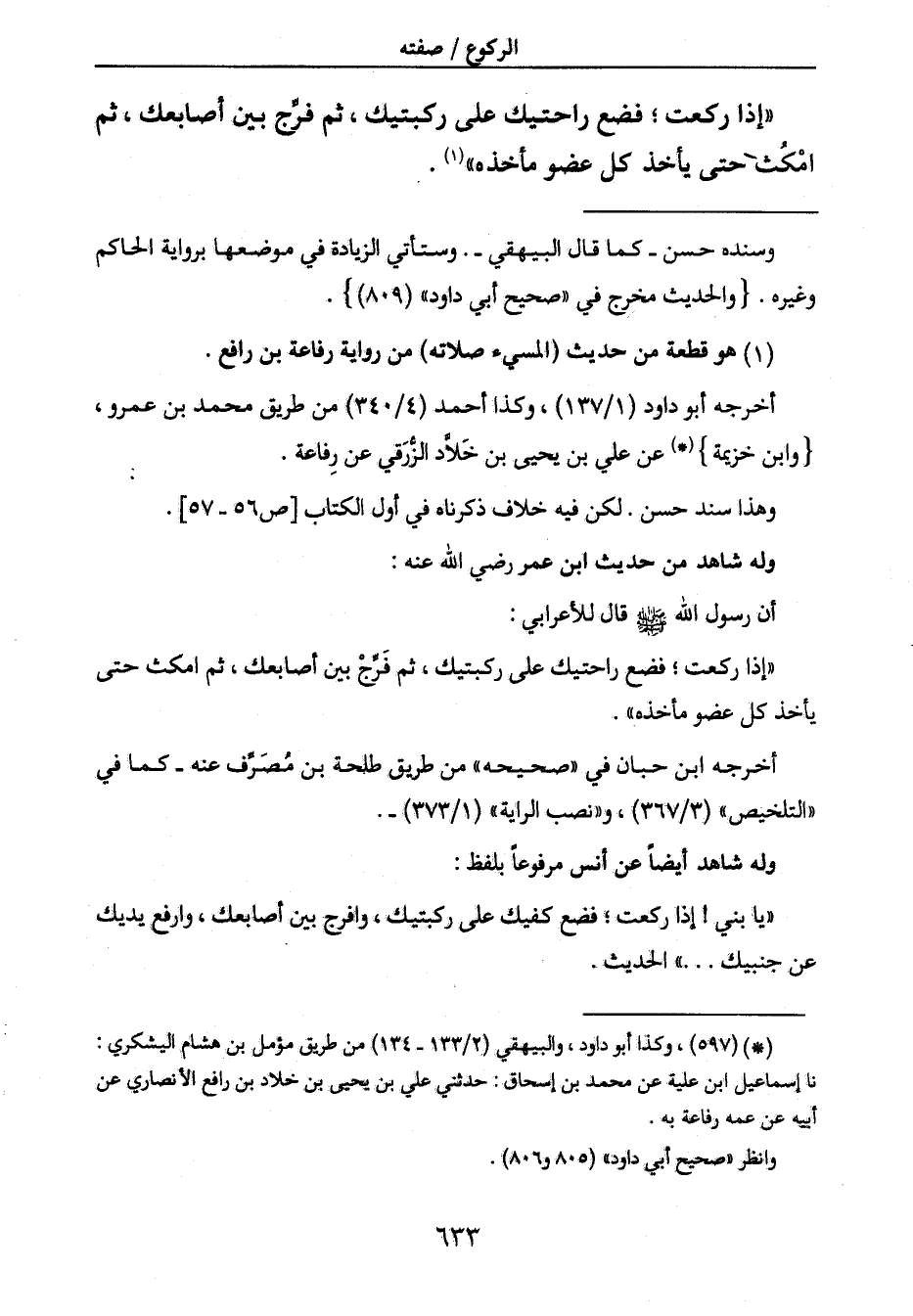 (1) هو قطعة من حديث (المسيء صلاته) من رواية رفاعة بن رافع.
