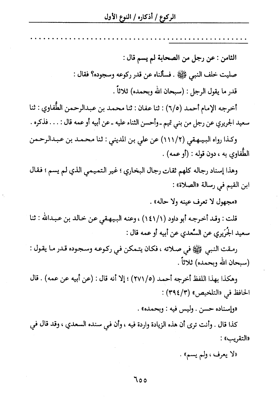 رمقت النبي صَلَّى اللَّهُ عَلَيْهِ وَسَلَّمَ في صلاته، فكان يتمكن في ركوعه وسجوده قدر ما يقول: