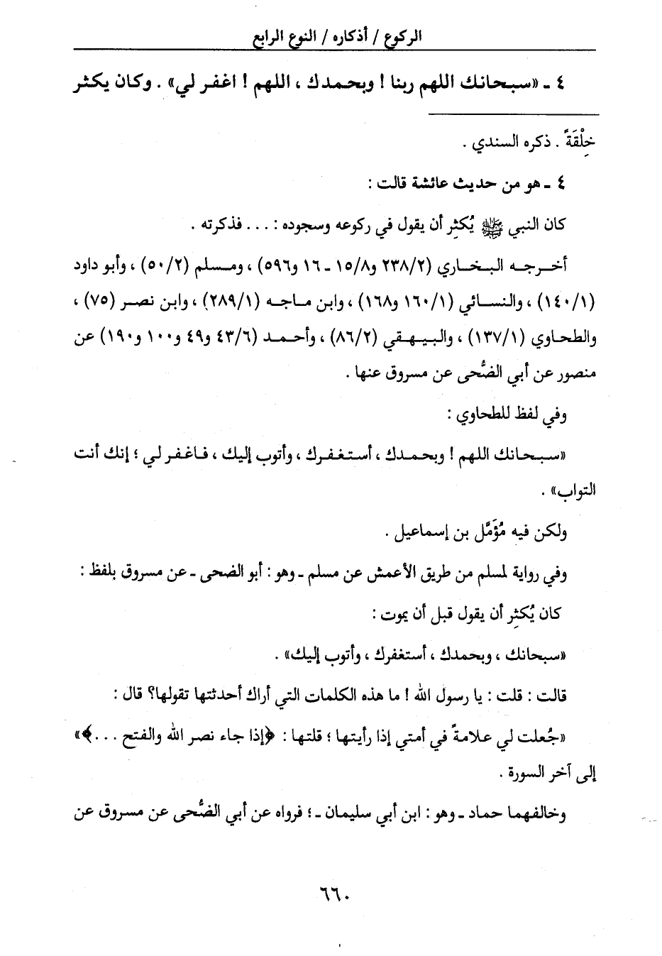 4- " سبحانك اللهم ربنا! وبحمدك، اللهم! اغفر لي ". وكان يكثر