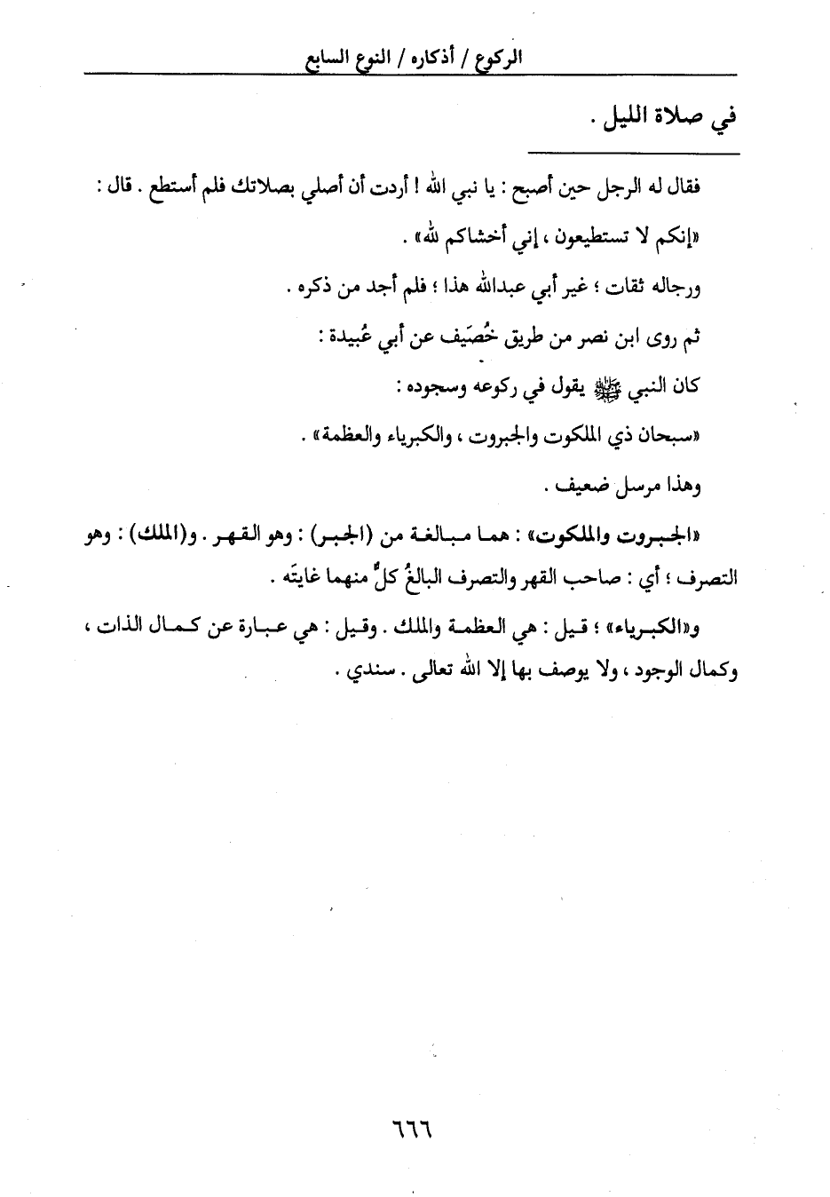 " سبحان ذي الملكوت والجبروت، والكبرياء والعظمة ".